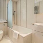 This beautiful fifth floor apartment comprises two spacious double bedroom (the master with an en-suite bathroom), two modern fitted bathrooms, airy and spacious reception room with rear facing views over Hay’s Mews, modern fitted kitchen and ample storage space with access to a private gated communal garden.